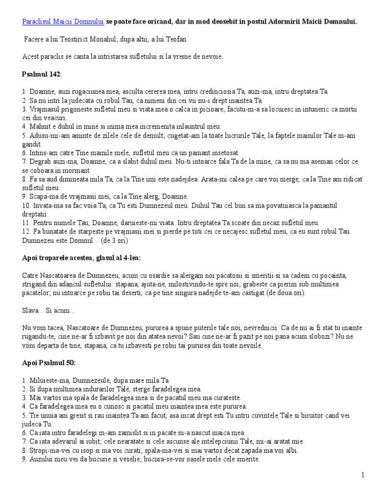Paraclisul Maicii Domnului 40 De Zile Pentru Implinirea Dorinţelor
