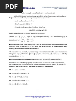 Scientia Ro Partea Intreagă Si Partea Fracţionară A Unui Număr Real