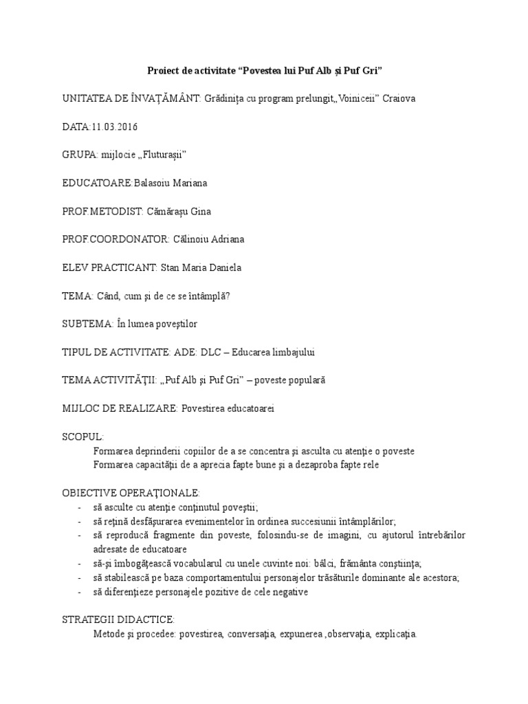 Proiect De Activitate Puf Alb Si Puf Gri Daniela Stan 26 03 2016