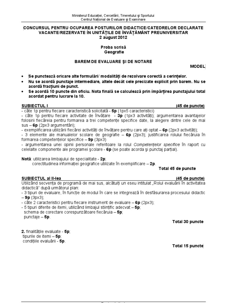 Titularizare Model Geografie Barem