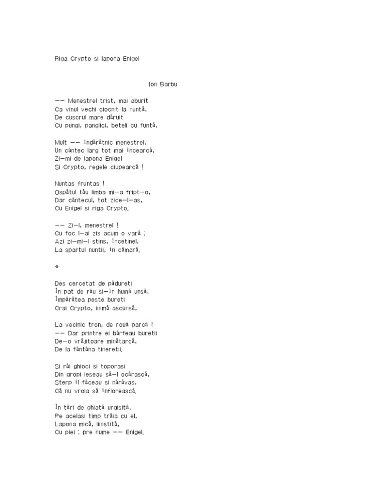 Riga Crypto Si Lapona Enigel Comentariu Ion Barbu