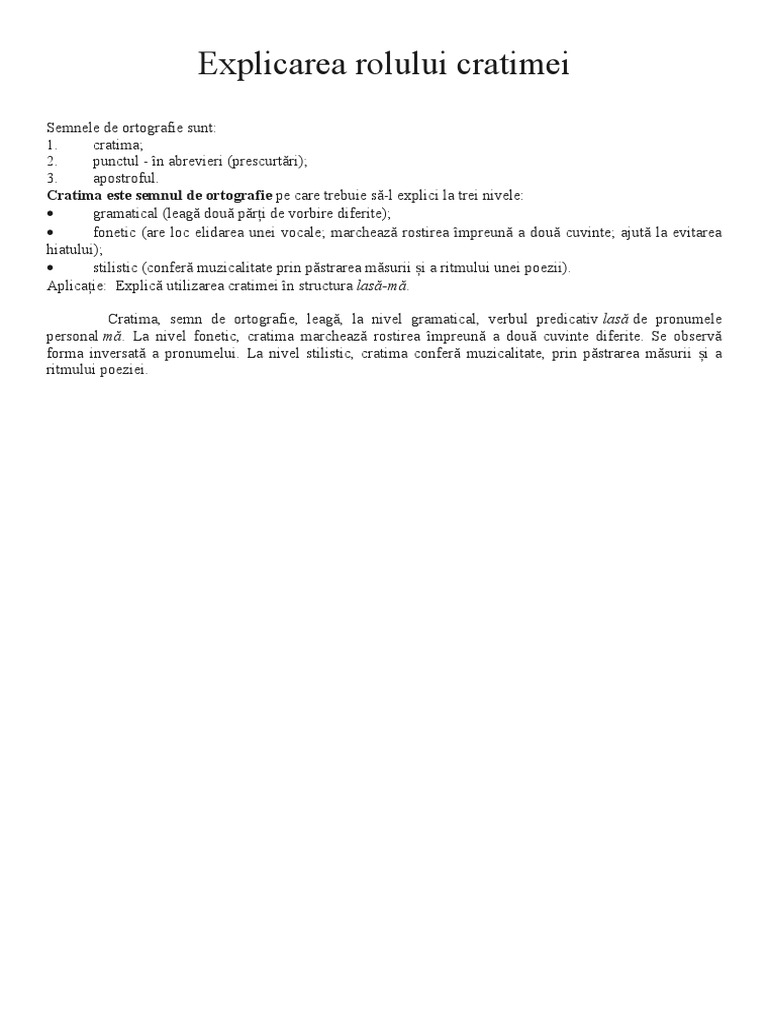 Rolul Cratimei In Structura Pe Ntinderea Brainly Ro