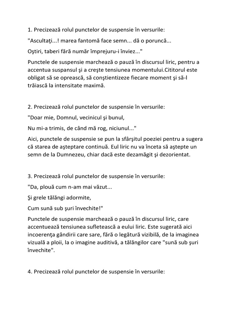 Precizează Rolul Expresiv Al Punctelor De Suspensie In Textul Poetic Brainly Ro