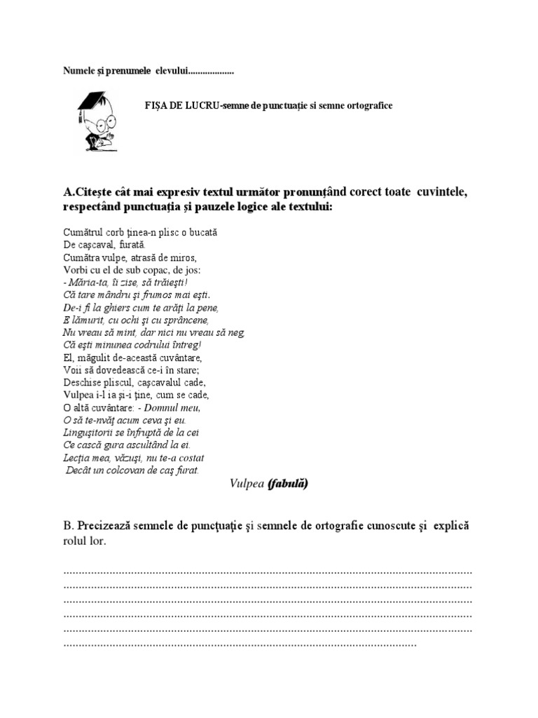 Fisa De Lucrusemne De Punctuatie Si Semne Ortografice