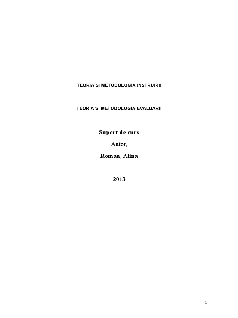 Teoria Si Metodologia Instruirii Teoria Si Metodologia Evaluarii