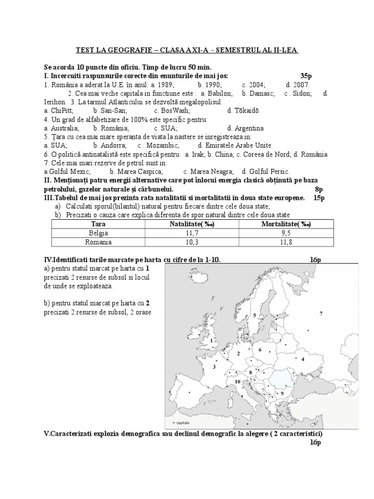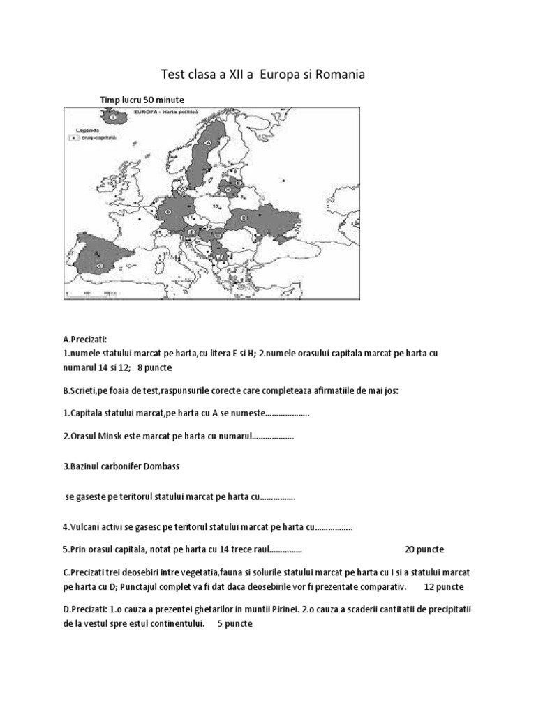 Test De Evaluare A Cunostintelor Geografie Clasa A X A