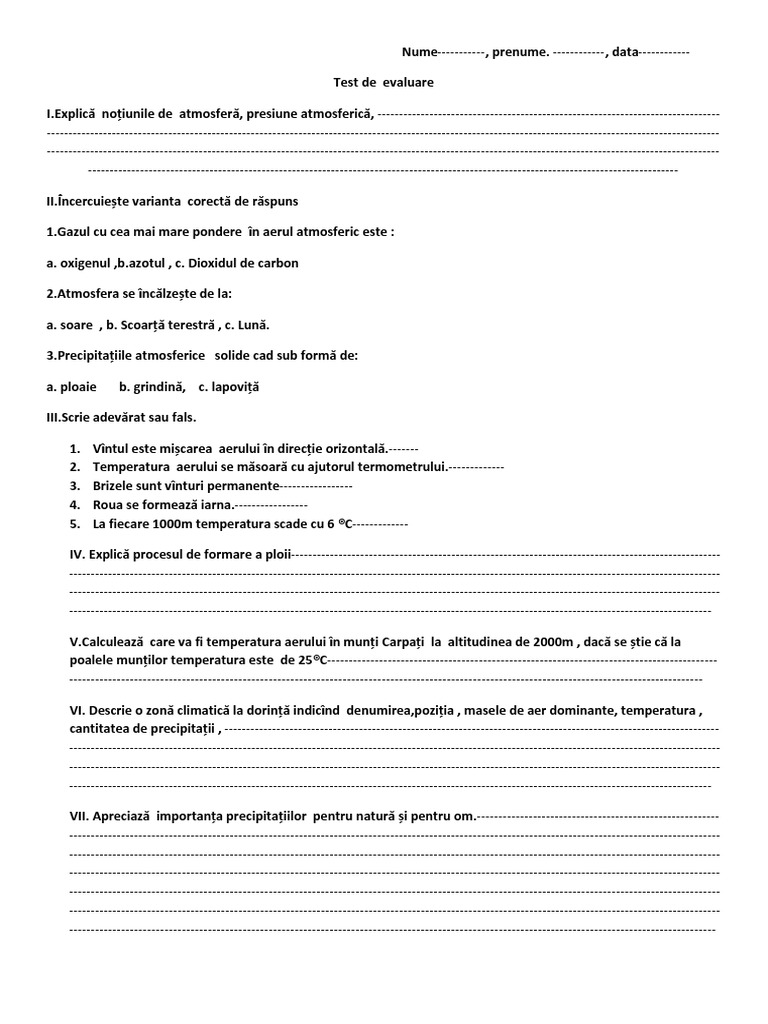 Test De Evaluare Clasa A 5unitatea Atmosfera