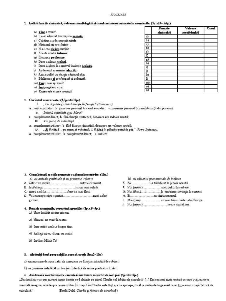 Test Pronume Gimnaziu Clasa A 7 A