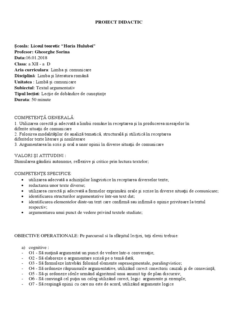Proiect Didactic 12 Argumentare